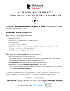 Your MN Communities Create submission URL is: https://indieauthorproject.librariesshare.com/minnesota-creates